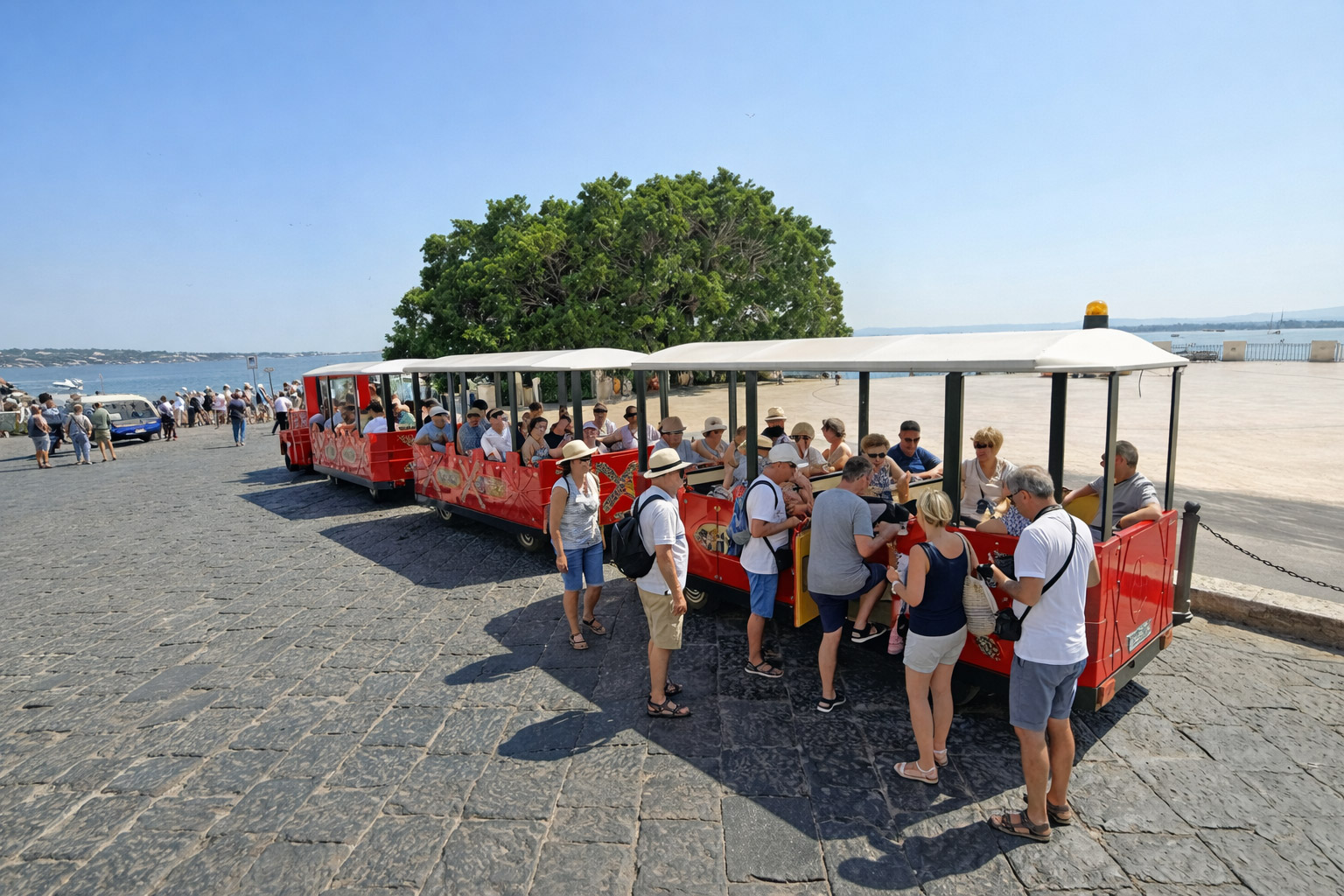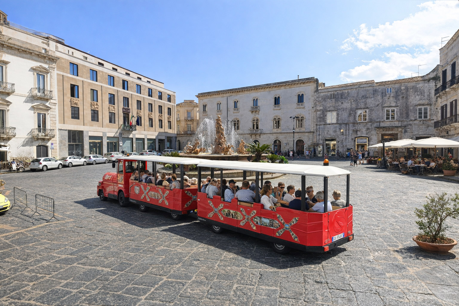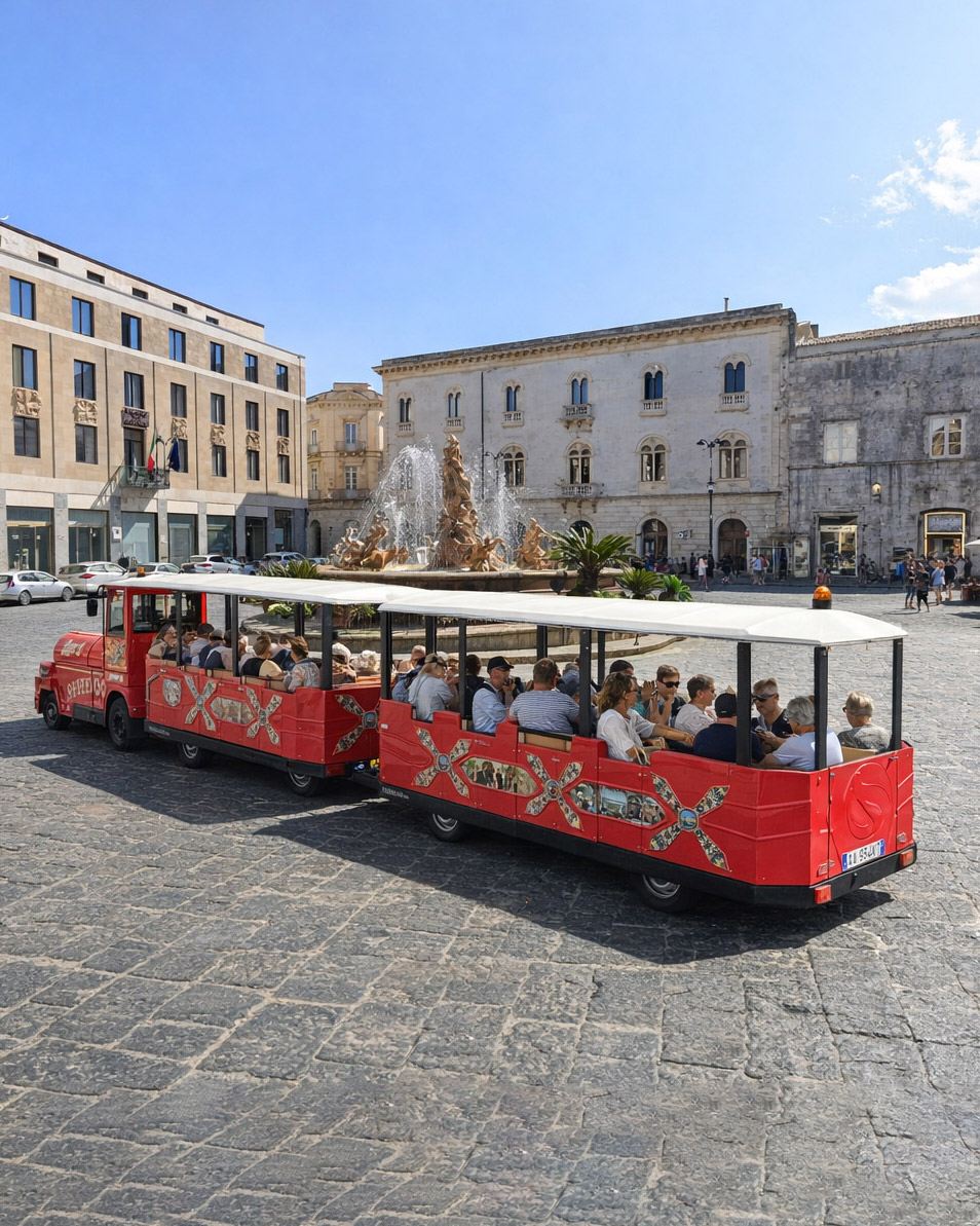Happy Train Ortigia Tour mette a disposizione due confortevoli trenini turistici, pensati per accogliere in modo sicuro e piacevole gruppi di diverse dimensioni.