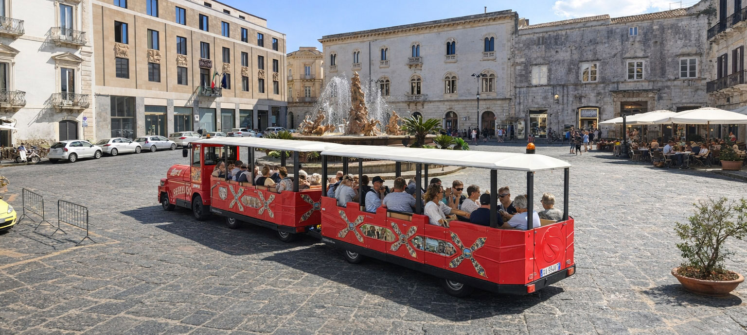 Per un’esperienza completa e coinvolgente, il nostro tour di 2 ore a bordo del Happy Train Siracusa unisce la bellezza barocca di Ortigia alle meraviglie storiche della città antica! Percorri i luoghi simbolo del patrimonio UNESCO con soste fotografiche e visite dedicate: ammira il Santuario della Madonna delle Lacrime con la sua cupola imponente e la statua miracolosa, la Chiesa di San Giovanni alle Catacombe immersa nelle cripte paleocristiane, e il Monumento ai Caduti d’Africa simbolo di memoria civile. Infine, lasciati incantare dal fascino unico di Ortigia, tra vicoli barocchi, Duomo antico e Fonte Aretusa avvolta da miti millenari. Un viaggio indimenticabile per famiglie, coppie e gruppi, tra storia, fede e paesaggi mediterranei. Prenota ora il tuo tour Happy Train!